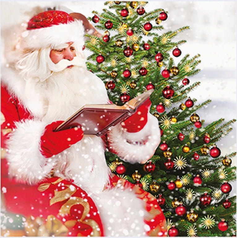 afbeelding van de Kerstman met boom.