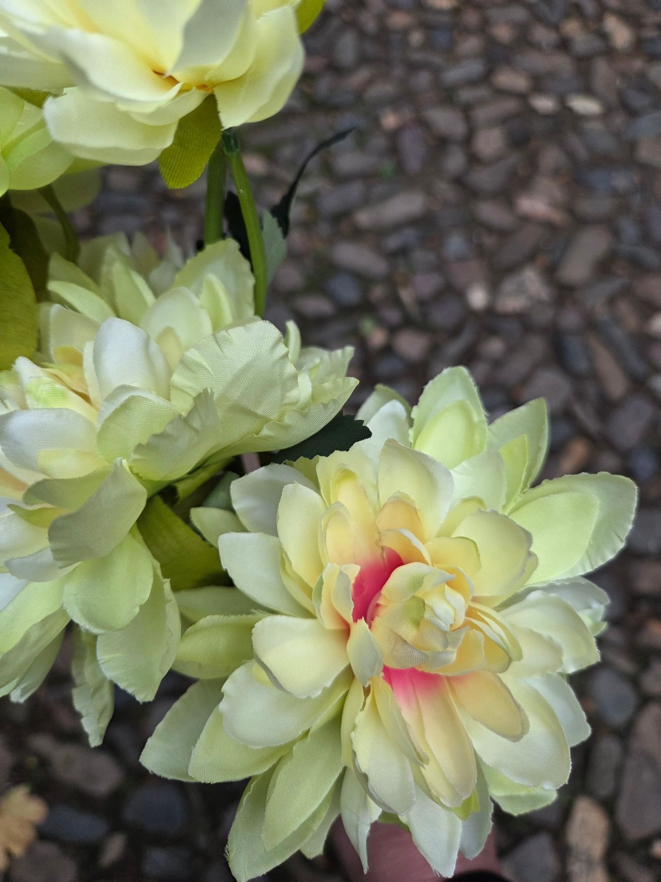DAHLIA - KUNST - 6 BLOEMEN - LIME GEEL