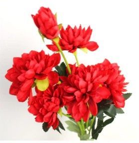 DAHLIA - KUNST - 6 BLOEMEN - ROOD