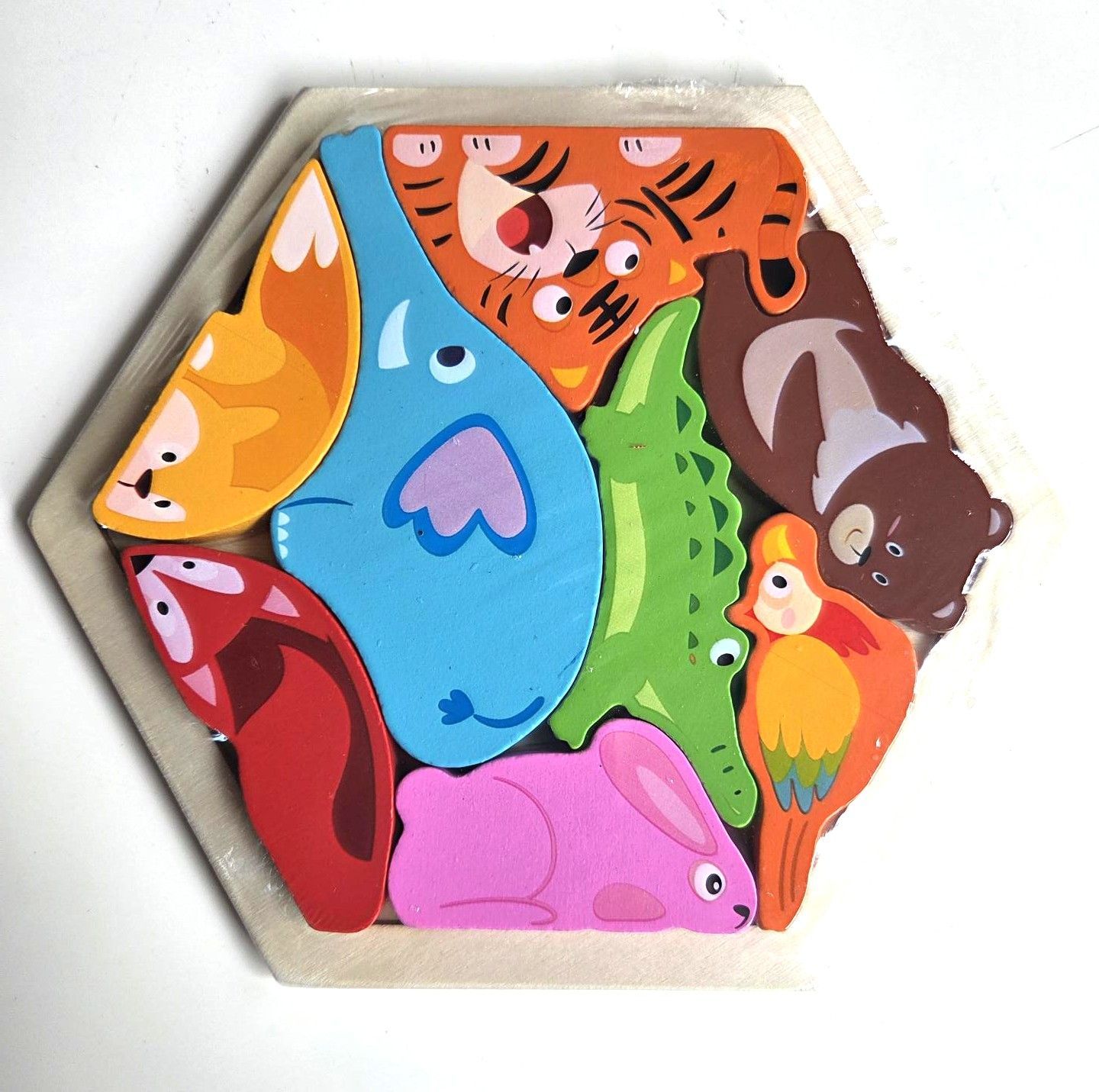 grappige puzzel in vrolijke kleurtjes met diverse dieren.